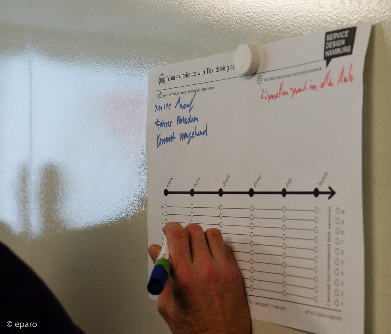 Nach Franks Vortrag gab es dann natürlich wieder eine praktische Methodenübung. Diesmal ging es darum, die Zufriedenheit beim Taxifahren in Kleingruppen zu diskutieren und dann für die kritischste Komponente Lösungsansätze zu skizzieren.